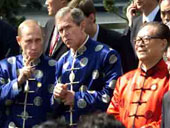 Chinese Prsident Jiang Zemin and the US President George W. Bush in Chinese-Style Costumes