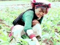 An woman farmer of Chinese minority Yi nationality weeds the corn field in earthquake stricken Ninglang, southern China’s Yunnan Province, May 26, 2001.