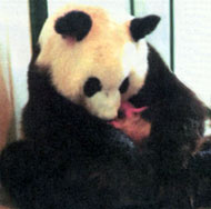 The hairless, pink eldest brother has been closely attended to in a comfortable pen for infant pandas.