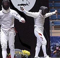 Wang, who upset South Korean foil hero Kim Young-ho 15-9 in the semifinal, collected unbelievable seven straight points to give China the first gold. He used to be bad tempered which had impact on his competitions. But he looked more mature in the Asian Games and made his opponents often quick-tempered in the dual.