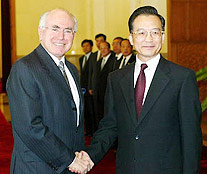 Wen made the remark during talks with visiting Australian Prime Minister John Howard, who started his working visit to China Sunday evening at Wen's invitation.