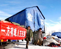 Local officials said it would take two days for trucks carrying 1,000 tents to reach the stricken region because of deep snow, and arrival of relief materials from Urumqi, the regional capital, has likewise been delayed.