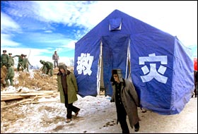 An additional 1,000 tents and living necessities sent by the regional government, along with 100 tons of coal donated by the department, were expected to arrive Tuesday.
