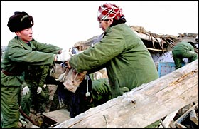 Zhang Yong, the senior corps officer, said that the division's rescue command headquarters had mobilized 700 workers to dig caves to provide shelter for homeless people and cattle, but he said the work was slowed by the cold.