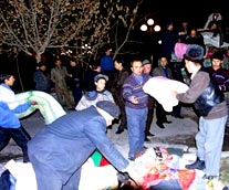 The first shipments of relief goods, 1,200 tents and 1,000 cotton quilts, would reach Jiashi and Bachu counties Tuesday. Meanwhile, 6,000 tents, sent from central China's Hubei Province, have already arrived in Urumqi.