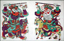 The pictures printed with woodblocks in Zhuxian Town are very popular due to their bright color, exaggerated images, rough lines and full compositions. Every year on the ninth day of the lunar ninth month, Zhuxian Town holds a New Year Picture fair to commemorate its anniversary. It is also the day to start the printing of its New Year Pictures. In the past, operas used to be performed for nine days in front of the temples of Lord Guan and General Yue Fei. Then all workshops kicked off for business.