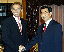 Hu made the remark during his meeting with visiting British Prime Minister Tony Blair who arrived in Beijing on Sunday evening on a three-day official visit to China.