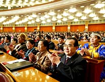 A total of 2,939 NPC deputies attended the meeting. In line with NPC procedure, the newly-elected Premier Wen Jiabao first nominated the new cabinet members to the 7th plenary meeting of the First Session of the 10th NPC and then the NPC deputies voted to approve.