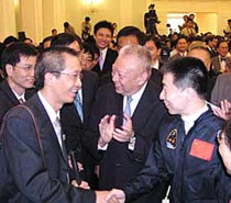 At the welcoming ceremony, Hong Kong Chief Executive Tung Chee Hwa said that from the very day of the success of the first Chinese manned spacecraft, Hong Kong people have been longing for seeing Yang Liwei in Hong Kong, and now the chance has come.