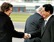 The Chinese president was met at the airport by New Zealand Governor-General Dame Silvia Cartwright, Prime Minister Helen Elizabeth Clark, Chinese Ambassador Chen Mingming and staff members of the Chinese embassy.