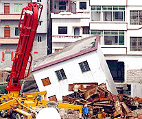 Many engineering machines were destroyed or damaged , while a residential building tilted, Liu said.