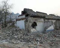 The Huashi community in Chongwen District stands against a backdrop of high-rise apartment buildings. Most of the older houses have been torn down.