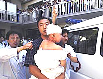 "Two doctors burst into tears and ran out of the room immediately when were told the news," a witness in her 50s said. Parents were gathering at the fourth floor of the building of the mother's and infant's section of the hospital, weeping.