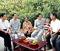 The president specifically visited Baita Village, in Yilong County, Nanchong, one of the old revolutionary base areas, where the farmers have suffered severe water shortages. After Hu's instruction to solve the problem at the beginning of this year and local government's efforts for several months, the difficulty has been much improved.