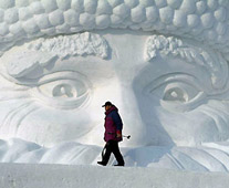 Thirty-five ice and snow artists worked on the 80-metre-long and 17-meter-high giant. A snow and skiing tourism festival opens at the park today.