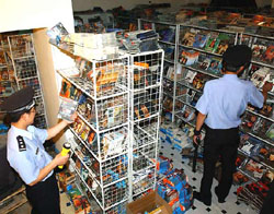 Chinese police also said manufacturing and selling pirated DVDs carries penalties of at least five years in prison.