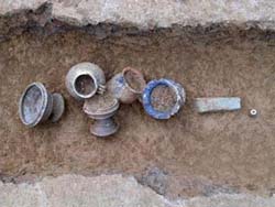The 31 prehistoric tombs are scattered around an area of 800 square meters. Archaeologists with the provincial archaeological research institute have excavated the area during the past two months, unearthing 123 funerary objects. The relics range from pottery to stone tools to jade ware.