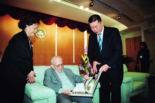 February 2004, revisiting Macao after a separation of 60 years. Israel Epstein and Ho Hau-Wah, Chief Executive of Macao Special Administrative Region.
