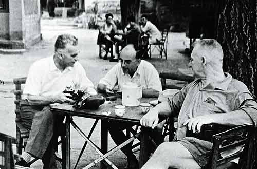 With Edgar Snow and Rewi Alley at Fragrant Hill, Beijing.