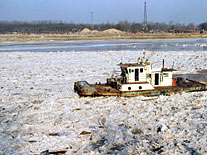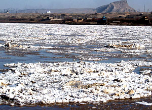 At Dongying, near the river's mouth, 70 percent of the water was covered with ice on Monday.