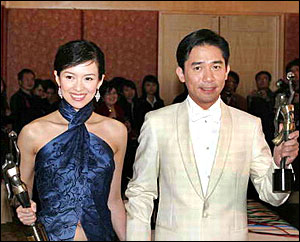 Wong Kar Wai's artistic 2046, which was close behind with 12 nominations, won Best Actor and Best Actress thanks to the impressive performances by former Cannes winner Tony Leung Chiu Wai and Crouching Tiger, Hidden Dragon star Zhang Ziyi.