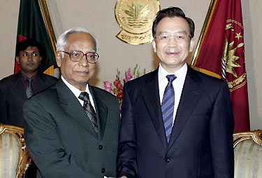 Chinese Premier Wen Jiabao meets with Bangladesh President Iazuddin Ahmed in Dhaka, capital of Bangladesh, April 8, 2005.