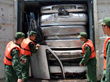 The cars of brand name like Mercedes Benz and Toyota were cut into two pieces. They were found in nine containers when the ship was unloaded in the afternoon. Official seals stuck on the containers proved to be falsified.
