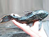 The fish was described as having flowing black stripes down the length of its body, with the mouth bigger on the lower side of its head, and with a flat belly and narrow back.
