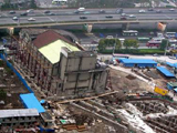 Tuesday, as engineers fixed their eyes on the readings shown on pressure gauges, the building was elevated by 59 synchronized jacks over 30 minutes. It was then laid on an armored tray.