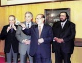 Chinese President Jiang Zemin Sunday met with three world-famous tenors, Luciano Pavarotti, Placido Domingo and Jose Carreras, in the wake of their joint concert in the Forbidden City.