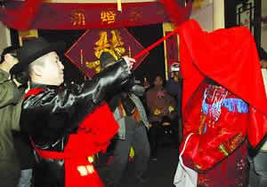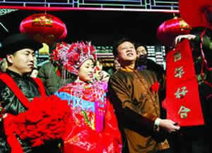 A wedding ceremony in the traditional Chinese style was held Sunday in Beijing's Hutong near Beihai Park. The traditional wedding is making a comeback among young couples.