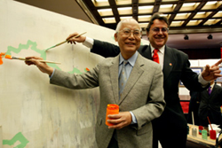 He Zhenliang, China's IOC member, also painted symbolic strokes.