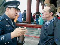 Thirty-seven-year-old Liu Wenli works in the Beihai Park Police Station, branch of the Xicheng District of Beijing Police Security Bureau. He began to learn English after an awkward experience at duty during 1995 World Women's Conference in Beijing.