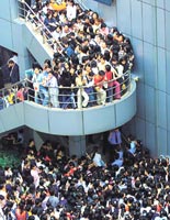 Thousands of local teen-agers throng Metro City in Xujiahui in Shanghai to catch a glimpse of the newest pop sensation, F4, on May 19.