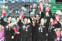 China clinched their fifth consecutive women’s world team table tennis championship on Saturday, thrashing North Korea 3-0.