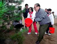 Some two million local people joined tree-planting activities the same day, as part of the city's afforestation program following its winning of the bid to host the 2008 Olympic Games.
