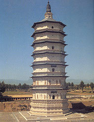 This pagoda is located at Baita (White Pagoda) Village on the old site of Fengzhou City of the Liao Dynasty in the eastern suburbs of Hohhot, the capital of Inner Mongolia Autonomous Region. Since the pagoda was painted white, it is known as the White Pagoda by the local people. It was named the Wanbuhuayanjing (Ten Thousand Volumes of Huayan Scriptures) Pagoda because, so the legend goes, ten thousand volumes of Huayan scriptures were preserved inside. Today no Buddhist scriptures are to be found there.