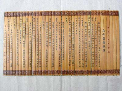 Xiao Wenfa completed a bamboo slip version of the anti-secession law in Hunan's Shaoyang City on Apr. 14th. The 86.4 cm long bamboo slip folding sheet is elaborately fabricated with 72 pieces of 26 cm long, 1.2 cm wide bamboo in 8 layouts.