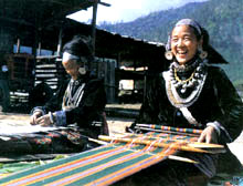 Women always wore huge silver earrings, silver bracelets and finger rings. They wore a sleeveless blouse exposing the waist and skirts reaching to their feet, or a short one when they were kneeling in the fields. Today in the Dengba village, the elderly Dengbas still wear traditional ethnic costume, but the younger people only dress up in their costumes for festivals and other ceremonies.