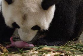 "We also play recordings of baby pandas' cries to remind her of her role," said a worker at the Wolong panda reserve in the southwestern province of Sichuan.
