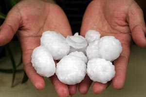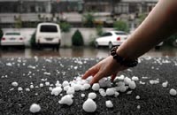 "This is the first time for me to see hail this year and it's rather rare to see such big ones, some might be even as big as walnuts. The rain grew violent suddenly after a loud thunder and then we heard the hailstones clapping at the windows and saw the white hailstones scattered in the green grass," a resident surnamed Luo said.