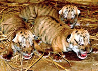 South China Tiger triplets make their public debut yesterday four days after being born at Shihu South China Tiger Cultivation Center in Suzhou, Jiangsu Province. There are now 70 such rare tigers in the world.
