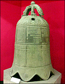 The bell of the Baoming Temple was cast in the 6th year of the reign of Emperor Longqing of the Ming Dynasty (1572). The bell is 1.48 meters in height, 0.94 meter in rim diameter and 402 kilograms in weight. An inscription on the bell includes the names of more than one hundred people who donated to the casting of the bell. At the head of them was Empress Dowager Cisheng. Another inscription on the bell indicates that the bell "was granted to the Baoming Temple by imperial order." This proved that the bell had connections with the Ming imperial family. The bell was cast in memory of Lü, a nun abbot of the temple. During the reign of Zhengtong of the Ming Dynasty, Emperor Yingzong personally led a military expedition against Esen, leader of the Oirats beyond the Great Wall. The nun pleaded with the emperor not to go for the expedition, saying: "It is unfavorable." Emperor Yingzong flew into a rage. He held that the humble nun was ignorant of the situation and her remarks undermined the morale of his army. So he ordered his palace guards to beat her. The nun sat cross- legged and passed away. When he was captured by the enemy at Tumubao, the emperor was overcome with regret. He repeatedly saw the nun in his dreams. Later Esen returned Emperor Yingzong to Beijing. When he regained his imperial position, the emperor recalled how the nun had pleaded with him not to go for the expedition regardless of her personal safety. He issued an imperial edict to confer the title of imperial mother-in-law on her posthumously and build the Baoming Temple. He also granted a horizontal board inscribed with the characters "Shun Tian Bao Ming Si" which implied "protect the Tianshun reign of the Ming Dynasty." "Tianshun" was the reign title adopted by Emperor Yingzong when he regained his imperial position. During the reign of Emperor Muzong (1567- 1573), the Baoming Bell was cast for the same purpose.