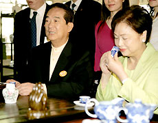 | Song and his wife Viola Chen enjoy tea at Gongwang Fu. |
