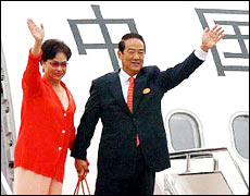 | Soong delivers a farewell speech on May 13, 2005 at the airport in Beijing. |
