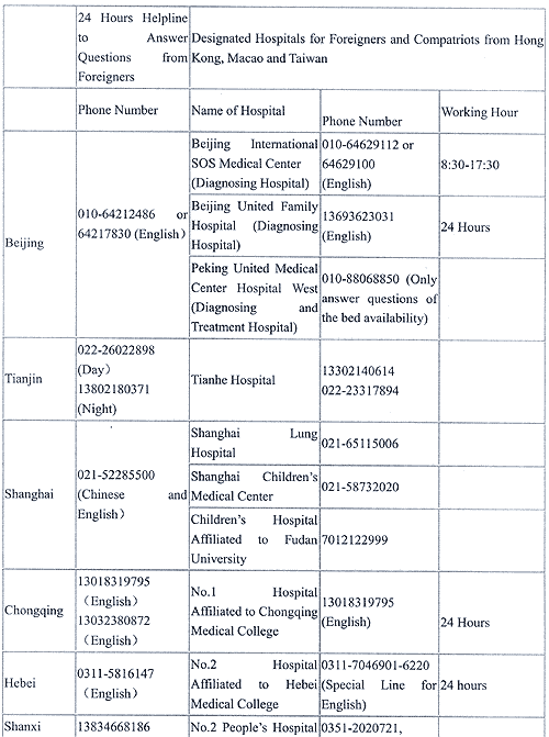 Designated Hospitals in Provinces, Autonomous Regions, Municipalities