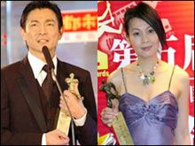 Hong Kong star Alex Fong was awarded Best Actor and Taiwan singer and actress Rene Liu won Best Actress at the fifth Chinese Film Media Awards opened last night in southern China's Guangzhou city.