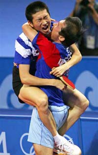 The Chinese paddlers had grabbed three golds from women's doubles, men's doubles and women's singles earlier in Athens.
