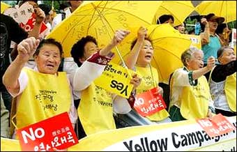 South Korean women who said they were forced to become sex slaves by the Japanese military during World War II shout slogans at an anti-Japan rally against Japanese Prime Minister Junichiro Koizumi's visit to South Korea in front of the Japanese embassy in Seoul June 15, 2005. (China Daily/Reuters Photo)