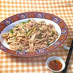 2. Heat the oil in a wok to 70-100?C (160-210?F) and slippery-fry the mutton slices until they are done. Take out and drain off the oil.